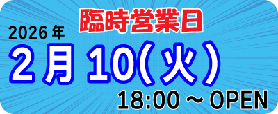 臨時営業のお知らせ 2026年2月1日2026年2月1日お知らせ 2月10日(火)は営業します! いつも当店をご利用いただきありがとうございます。通常火曜日は休館日ですが、祝日の為、下記の日程は営業致します。 ※ 臨時営業日のスタイルは「アンダーウェア」となります。※ 最終受付は深夜3時まで可能です。 皆様のご来店をお待ちしております。