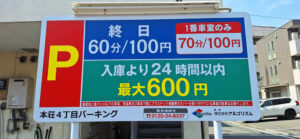 4輪車の場合、アトラス肥後寮専用の駐車場はございません。周辺のコインパーキングをご利用ください。