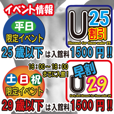 ※ 早割U29土日祝の16~18時の入場限定の早割です。29歳以下の一般が対象です。